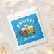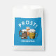 Saco de favorecimento OKTOBERFEST mostrando três cervejas e PROST! no topo em texto curvo contra fundo azul bávaro. Na parte inferior, o texto PERSONALIZÁVEL lê OKTOBERFEST, e isso pode ser alterado para seu evento ou seu nome, etc (no máximo, duas linhas). Ideal para festas privadas, celebrações públicas, festivais de cerveja, estação Oktoberfest, etc. Itens correspondentes estão disponíveis na Coleção CHEERS AND BEERS por Designs Bereanos.