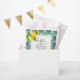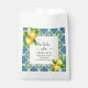 Azulejos azuis e amarelas da La Dolce Vita Mediterrânica Obrigado, solteira, limonada de fim de semana, a bolsas. Celebrar um fim de semana especial de solteira com estas charmosas "La Dolce Vita", tema de limonada a favor das bolsas. Projetado para evocar a beleza ensolarada do Mediterrâneo, cada saco apresenta uma deliciosa borda de azulejos azuis e amarelos, lembrando os padrões mediterrânicos. Adicionando um toque de elegância natural, delicados ramos de limão adornados com flores vibrantes, nos cantos superior esquerdo e inferior direito, capturando perfeitamente a essência de uma reunião de verão refrescante. Estas bolsas favoritas oferecem uma maneira bela e memorável de obrigado aos seus convidados por partilharem as festividades.