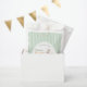 These charming baby shower Favor Bags feature a delicate vintage watercolor illustration of Mother Goose and Gosling, creating a warm and touching story of love and care. The delicate image is framed in an elegant oval border and set against a classic pastel green striped background, inspired by timeless nursery designs and fairy tales.