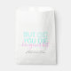 Festa de solteira personalizada ou Bag do Kit Favorito do Alivio de Hangover da Celebração de Aniversário com uma citação engraçada "Mas você morreu" e um texto personalizado com o nome da noiva, o local de destino da festa e a data em azul claro e cor-de-rosa. Todas as cores, fontes e texto podem ser editados para corresponder à sua parte.
