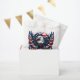 Esta bolsa de favores do partido é mostrada em branco com um festivo 4 de julho patriótico EUA Flag e Eagle impressão. Personalize este item ou comprar como está. Imagem licenciada