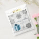 O presente de pacote favorece este feriado com um Bag de presente de Natal Azul. O design de bolsa de favores apresenta um presente de Natal embrulhado vibrante, enfeitado com cinzas e flocos de neve brancos contra um fundo de nuvens de cinza. Itens adicionais de presentes e feriados disponíveis com este design também.