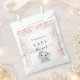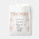 Para um chá de fraldas, comemorando uma menina. Um fundo branco chic. Decorado com ouro rosa, gotas de brilho rosado e uma menina elefante bebê. Personalize e adicione o nome da mãe a ser.