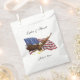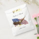 Uma bandeira dos Estados Unidos e uma águia careca voadora. Adicione nomes e data do seu casamento ou evento.