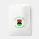A bolsa de favores mostra um anjo vestindo a bandeira da Diáspora Africana para decoração de férias ou decoração de Natal. O anjo natalino da bandeira africana americana está rodeado de texto que lhe permite adicionar seu próprio texto ou personalizar com um nome e o ano. A inscrição é verde.