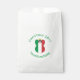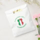 O saco de favores mostra um anjo vestindo a bandeira Itália para decoração de férias ou decoração de Natal. O anjo de Natal da Bandeira italiana é encontrado rodeado de texto que permite adicionar seu próprio texto ou personalizar com um nome e o ano. Deve funcionar bem para os seus favores de Natal ou festas de férias. A inscrição é verde, mas pode ser alterada usando o recurso "editar design".