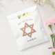 O Bat Personalizado Mitzvah favorece as bolsas com uma simples estrela rosa dourada do símbolo David, irá dar o tom para o seu glam party. O simples design inclui dois conjuntos de texto, BAT MITZVAH em um arco suave acima do rosa dourado Escudo de David e espaço para o nome de sua filha em um script caprichoso abaixo. Preencha este Bat Mitzvah personalizado favorece bolsas com glitter ou personalize o design de glitter de ouro rosa para um partido Chanucá, um Bar Mitzvah ou qualquer celebração que você esteja planejando.
