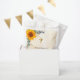 Para um elegante batismo de verão ou outono, neutro em relação ao gênero. Um fundo branco e ouro de cor aquosa com pinceladas. Decorados com girassóis, eucalipto verde-verde-verde-verde-verde, folhagem de ouro falso e poeira de brilho. Uma cruz de ouro falsa. Personalize e adicione o nome da criança e uma data. Letras pretas e ouros
