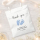 Saco bonito para o seu chá de bebê favorece com "obrigado você" em um roteiro na moda com pestanas e uma aquarela azul de pés de bebê.