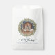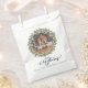 Este tradicional saco de favores de Natal apresenta uma imagem nativa do bebê Jesus dormindo em uma mangueira com Maria e José no centro cercado por uma coroa de morango. Abaixo estão as palavras "Feliz Natal". Você pode personalizar com seu nome.