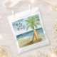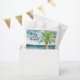 Bebê no Conselho! Chá de fraldas - perfeito para um chá de fraldas de verão. Tema da praia. A design de aquarela tem uma cena oceânica e de praia com surfboard, palmeira e chapéu de verão.