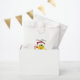Um lindo desenho animado de abelha de Natal com nariz vermelho de Natal, chapéu de Natal, segurando uma bengala de hortelã-pimenta e uma cesta de mel vermelha. Design de animação de Natal para crianças bonitas. É fácil personalizar alterando o texto.