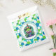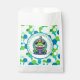 Obrigado personalizado com tema de sapo bonito você favorece bolsas para convidados de festa de aniversário. Um sapo adorável de um chapéu de aniversário com um presente com um fundo bolinhas bonito em azul e verde. Edite o texto na área personalizar.