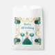 This birthday favor bag features an elegant gold frame, a beautiful princess with blonde hair and a teal blue dress, flowers and a balloon. This is perfect for a birthday party.