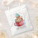 Enquanto as bolsas de natal bonitas apresentam um biscoito de gengibre de aquarela fofo num inverno de malha que desfruta de um banho quente numa caneca de cacau com uma cana doce e marshmallow e sotaques de neve pastel. A saudação "Feliz Feriado" e "da cozinha de...." linhas de texto podem ser personalizadas. Arte da KL Stock. Visite a minha coleção "Gingerbird & Cocoa" para coordenar cartões, convites, material de festa e decoração.