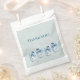 A bolsa de favor perfeita para enviar as fichas de agradecimento dos seus hóspedes para casa com o final do seu chá de fraldas gêmeo. Um fundo azul com padrão e quatro botas doces para simbolizar seus gêmeos!