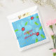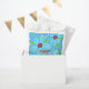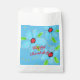 Saco de favoritos de biscoito de papel com um impressão azul-claro florado. O fundo azul pode ser mudado para qualquer cor. O texto feliz de aniversário pode ser alterado para sua própria mensagem pessoal. O texto também é removível. Token de convidado de evento especial do Designer.