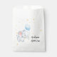 Playful, adorable elephants held blue balloons in their trunks and surrounded gold stars.