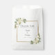 O saco elegante de favores de casamento é chic e romântico, com rosas de casamento brancos com pincéis de pincelada mostrados em folha verde num fundo branco e eterno. Uma moldura geométrica de cor de ouro cintilante em forma de cristal fornece um toque de tendência. "Obrigado por comemorar conosco!" aparece em texto clássico. Os primeiros nomes do casal e da data do casamento estão no delicado roteiro elegante e texto de coordenação. Certifique-se de ver todos os itens correspondentes na coleção!