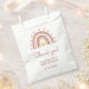 Arco-íris boêmico doce em tons cor-de-rosa pincelados com tipografia do script Obrigado. Edite facilmente a modelo para ler a mamãe como nome e data de chá de fraldas. Boho Chá de fraldas Arco-Íris Obrigado Esmagar O Favor Rosa Bag.