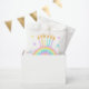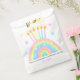 Este design do bolo arco-íris apresenta um bolo arco-íris desenhado manualmente com velas e borrifar em cima com estrelas arco-íris ao redor do exterior. Personalize o texto para sua ocorrência. Consulte a coleção de partes correspondentes.
