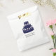 Um bonito design com um bolo de casamento azul marinho de três camadas com sotaques de flores. Personalize adicionando nomes e data conforme desejado.