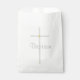 Papel Batismo Elegante Favorece Bolsas para o bebê ou menina. Uma cruz prata pintada manualmente e elegante com sotaques Dourados. O batismo é escrito em texto prateado contra fundo branco. Personalize com texto adicional clicando em Personalizar. Trabalho de arte gráfico original e Design © TamiraZDesign.