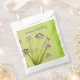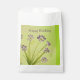 Pequeno saco de biscoitos florais de aquarela floral, com flores roxas e mauvas no verde limão. O texto de aniversário feliz pode ser personalizado para se adequar a qualquer celebração, ocasião ou negócio especiais. O texto também é removível.
