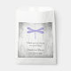 Saco de favores elegante e simples de Casamento com uma libélula roxa contra um fundo de cinza. Esta design é uma escolha única para um casamento moderno. Fácil de personalizar com seus detalhes de casamento. Clique em "Personalizar" para encontrar mais opções de personalização.