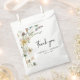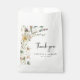 Bolsas De Favor De Casamento Floral. Este elegante obrigado de flor silvestre, branco, que você prefere, apresenta lindas cores d'água pintadas à mão, cor rosa pincelada, azul empoeirado, e flores verdes e prensadas com texto preto sobre fundo branco. Localizar itens correspondentes nos Convites de Casamento de Flores Selvagens | Colheita De Flores Presas.