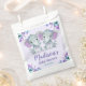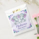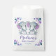 Chá de fraldas Elefante Gêmeo Personalizado Favorece Bolsas com flores púrpura e púrpura fofinhas/turquesas.