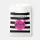 Adicione seus guloseimas favoritos a este saco de favoritos de stripe preto-e-branco personalizado para hóspedes ou amigos. Perfeito para aniversários, chás de panela ou noites de menina fora.