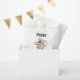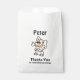 Esta bolsa de favores apresenta um cachorrinho bonito segurando um osso na boca acima do Obrigado. Todo o texto pode ser personalizado para ajustado do evento.