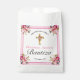 Expresse su agradecimiento a amigos y familiar por existir asal bautismo y recepción de su hija. Ofrezca un pequeño obsequio de ecimiento o un obsequio de fiesta con estas hermosas bolsas para obsequios de bautizo. Este bonito diseño apresenta um estilo floral de cor rosa suave con lunares blancos.