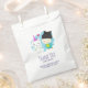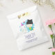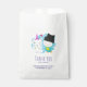 Aniversário favorece bolsas com uma imagem balbuciosa de um unicórnio e de um pássaro. Este par está sorrindo alegremente enquanto está saindo juntos. Um pequeno coração paira sobre a cabeça. Unicórnio é branco com asas de anjo e um chifre cor-de-rosa. O pássaro é uma cor azul esverdeada vestindo um toque preto com gato preto com ouvidos. Uma nuvem azul colocada atrás desses melhores amigos felizes.