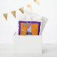 Festa de favores do Dia das Bruxas divertida mostra a aquarela de um chapéu de bruxa roxo com aranha pendurada e texto personalizável "Boo!" sobre fundo laranja e roxo
