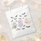 Atraia jovens convidados com esta festa de Halloween por uma bolsa que contém três adoráveis fantasmas pastéis segurando um balde de abóbora, pirulito e banner ‘BOO!’ cercado por morcegos negros brincalhões. Perfeito para preencher com doces, brinquedos pequenos, ou guloseimas temáticas, este saco durável e reutilizável adiciona um toque assustador a qualquer celebração. Personalize-o com nomes ou detalhes de eventos para criar uma manutenção única para festas de Halloween, eventos escolares ou festivais de outono.
