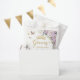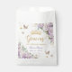 Personalize estas bolsas florais Quinceañera / Sweet 16 / Cincoañera. Basta clicar no botão personalizar para editar os textos, alterar as fontes e as cores das fontes. Apresentando flores lilás púrpuras bonito, verde delicado e borboletas roxas e douradas. Itens correspondentes disponíveis no repositório. c) Paperie fina somerset