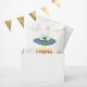This Out of This World birthday Favor bag features a neon stars, planets, and a colorful UFO, with retro lettering for the words ‘thank you.’ Personalize with your child’s name for a fun space themed kids birthday party favor. Perfect for a 6th, 7th, 8th or 9th birthday, alien party, outer space birthday, or galaxy celebration.