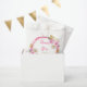 Beautiful birthday party favor bag with a bright pink and gold faux glitter frame with floral flower arrangements. Perfect for a birthday party. The words can be changed to suit your own details or requirements
