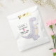 Favorecer bolsas com uma ilustração fofinha com um dinossauro roxo cinza.