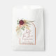 Envie os convidados para casa com uma lembrancinha que combine com o clima do seu evento. Estes saquinhos de lembrancinhas para chá de panela Fall in Love apresentam um arco quente de ferrugem terracota emoldurando flores elegantes em aquarela com flores de crisântemo vermelhas burgundy, rosas rosa claro, detalhes em marrom, folhagens de eucalipto em tons de sage, penas rústicas de faisão, capim-pampas seco e folhas de outono douradas. Perfeitos para doces ou pequenos presentes, eles combinam com os convites, placas de boas-vindas, placas de mesa e decoração da suíte Fall in Love para um visual rústico boho moderno e coeso.