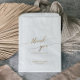 Este elegante obrigado de caligrafia de ouro que você gosta de casamento bolsas são perfeitos para um casamento simples. A design neutra apresenta um saco de favelas minimalista decorado com tipografia de folhas de ouro romântica e caprichosa. Personalize as bolsas de tratamento com um obrigado que você envia, seus nomes e a data. Essas bolsas de tratamento podem ser usadas para uma recepção de casamento, chá de panela ou qualquer evento ou festa. Nota: Este design não apresenta folha de ouro real. É um gráfico de alta qualidade feito para se parecer com folhas de ouro.