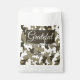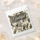 Faça seus favores se sentirem como pequenas obras de arte. Tonalidades quentes de castanho e castanho e crio de camuflagem rústica favorecem bolsas com uma sensação confortável e natural. Perfeito para casamentos florestais, aniversários ao ar livre ou comemorações temerárias. Personalize a frente com um nome e data para dar aos convidados uma manutenção que corresponda a toda a coleção.