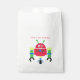 Festa de aniversário bonita favorece bolsas com um robô colorido feito em vermelho, verde, azul e amarelo. Personalize o texto vermelho pontilhado para o aniversário do seu filho. Os convites correspondentes e os suprimentos da parte estão disponíveis.