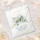 O Moderno Elegante Aquarela Verde Botânico O Favor do Casamento inclui folhas de eucalipto, folhagem botânica verde, folhas azuis empoeiradas e outros belos lençóis botânicos. Texto Azul Dusty.