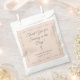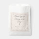Design apresenta um fundo cor-de-rosa champanhe para a sua mensagem pessoal de gratidão com uma letra de cor prateada. Imagem de uma cruz de cor prateada é exibida abaixo enquanto os nomes da noiva e do noivo, além da data do casamento, aparecem embaixo. Uma fronteira delicada rodeia design. Projetado para coordenar com a "Suite de Casamento Simplesmente Católico". Também disponível em branco.