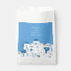 Um belo design de mala de favores com ilustração rústica de Santorini, igrejas de cúpula azul, Bougainvillea, plantas potes de terracotta com um fundo de lavagem branca na ilha grega. Um elegante destino Santorini, o desenho do casamento grego perfeito para casamentos do estilo Santorini e da ilha grega do Mediterrâneo. Os convites de casamento e outros artigos de papelaria também estão disponíveis.