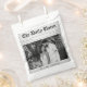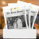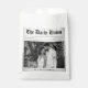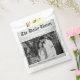 Legal artigo de jornal favorece bolsas. Personalize-o com os detalhes do evento e uma fotografia da noiva e do noivo.