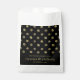 Estes sacos de presentes são perfeitos para qualquer casal planejando uma festa de casamento de moda. O design apresenta um fundo de bolinhas na moda em preto e ouro com uma redação de ouro editável correspondente. O design simples pode ser personalizado para se adequar ao seu evento especial e será o saco de presentes/favores perfeito para qualquer festa temática moderna, incluindo chás de panela, noivados, chás de casamento, festas de aniversário e muito, muito mais.